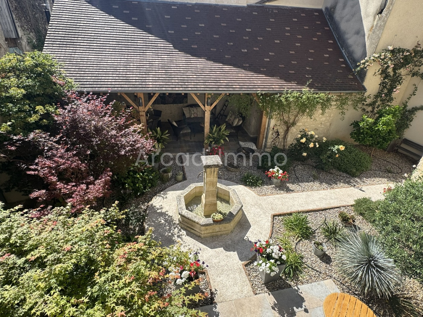 Le jardin de la cour est absolument magnifique : la fontaine au milieu crée une atmosphère agréable, et certains arbres et arbustes ont été sélectionnés pour créer un environnement paisible pour vous, votre famille et vos invités.