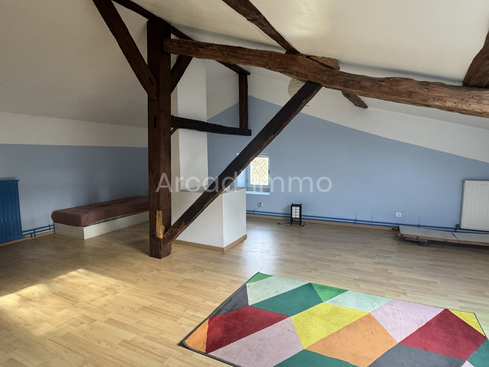 La grande chambre (38 m²) avec quelques poutres apparentes.