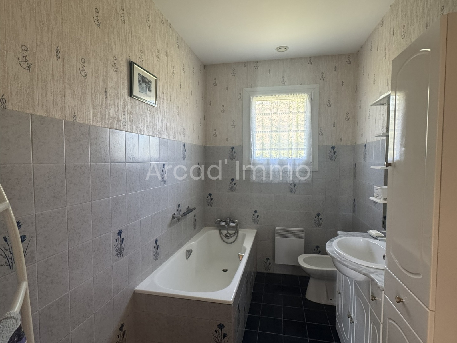 La salle de bains avec baignoire et lavabo (5.6 m²).