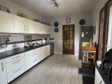 La cuisine (14.3 m²) entièrement meublée et aménagée, accès à la petite terrasse couverte en façade avec vue sur le jardin et accès à la spacieuse buanderie/cellier.