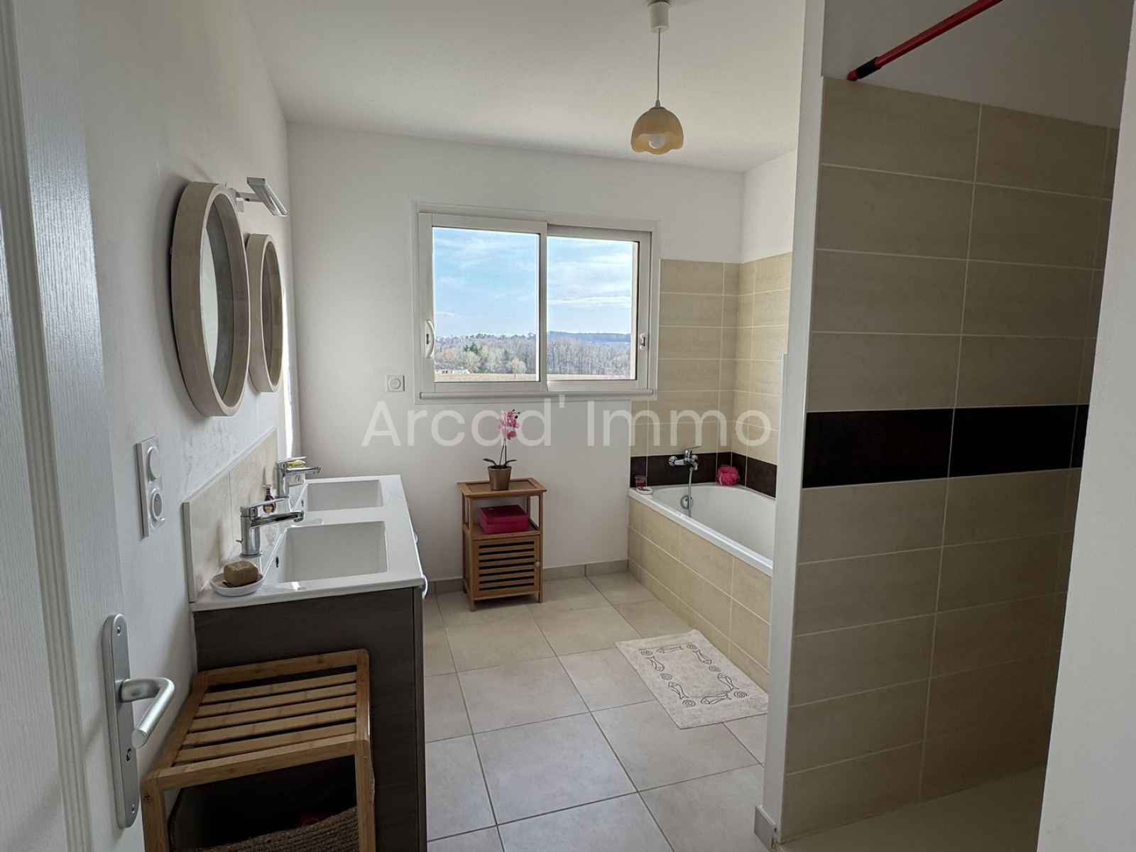 Des grandes baies vitrées coulissantes en aluminium, volets roulants électriques en aluminium, cloisons phoniques, gaines électriques blindées, placards. Conduit et tubage prêt pour l’installation d’un poêle à bois ou à granules.