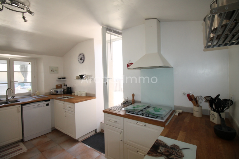 * Une cuisine aménagée (11,37 m²), carrelage au sol, une fenêtre, une porte vitrée donnant accès à la terrasse.