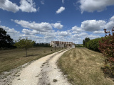 Le chemin d’accès est en castine avec aire de parking devant le garage et la maison.