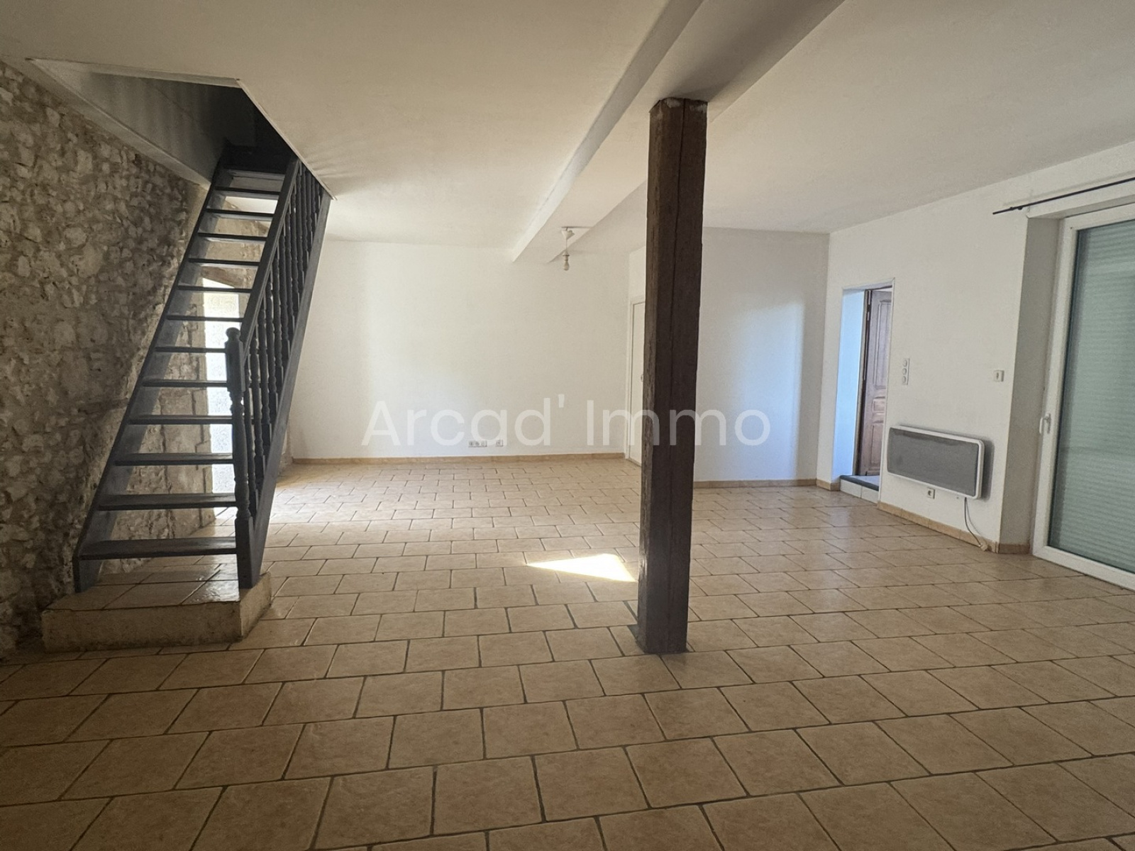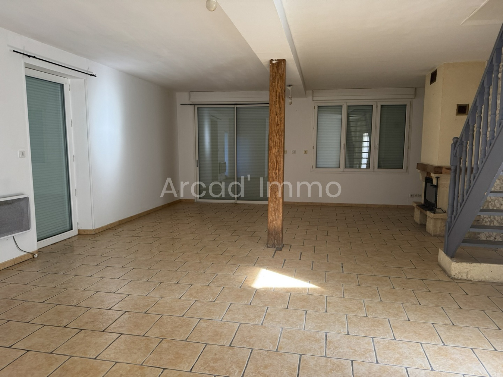 * Un grand séjour/salle à manger (54 m²) avec cheminée insert, double baie-vitrée, carrelage au sol, une belle et grande pièce de vie avec accès à la cour.
