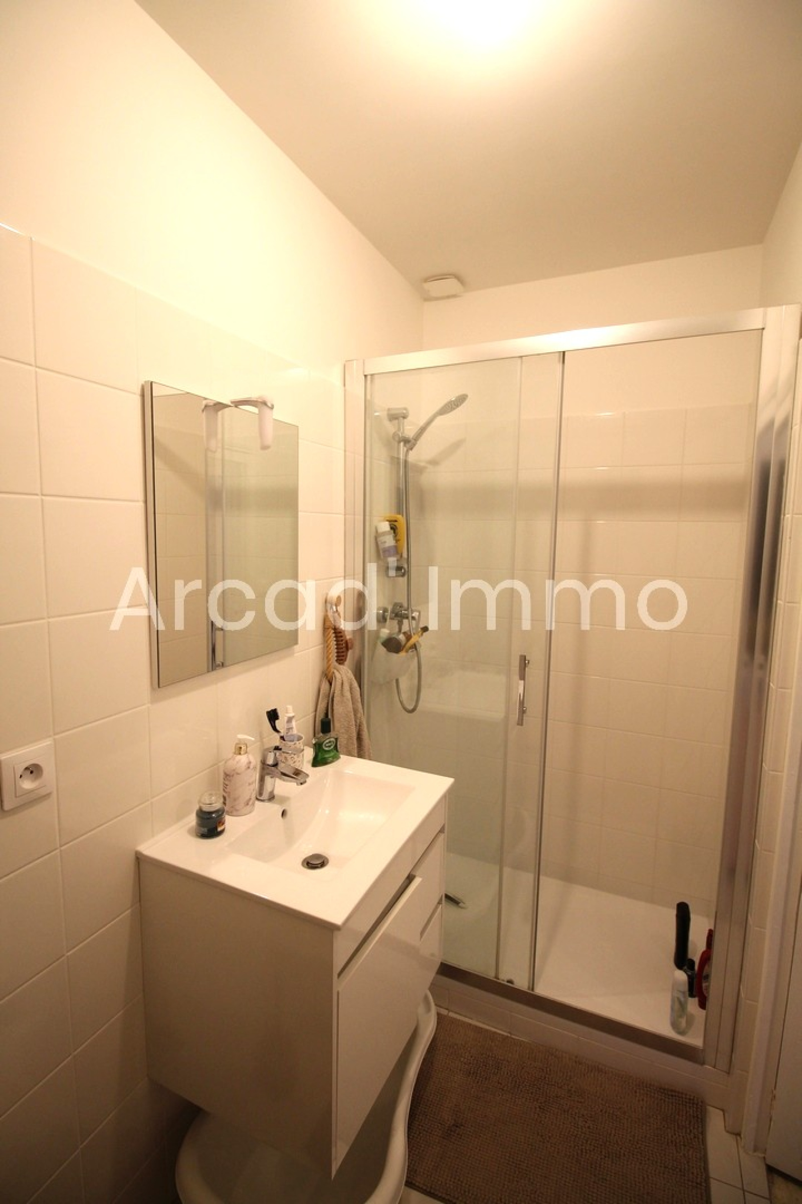 La salle de douche avec sa douche à l’Italienne, vasque avec miroir et WC (3.14 m²).