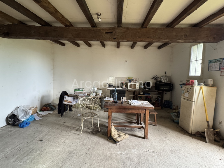 À côté de la maison, une petite grange en ruine offre la possibilité de la reconstruire ou d’y aménager un garage selon vos besoins.