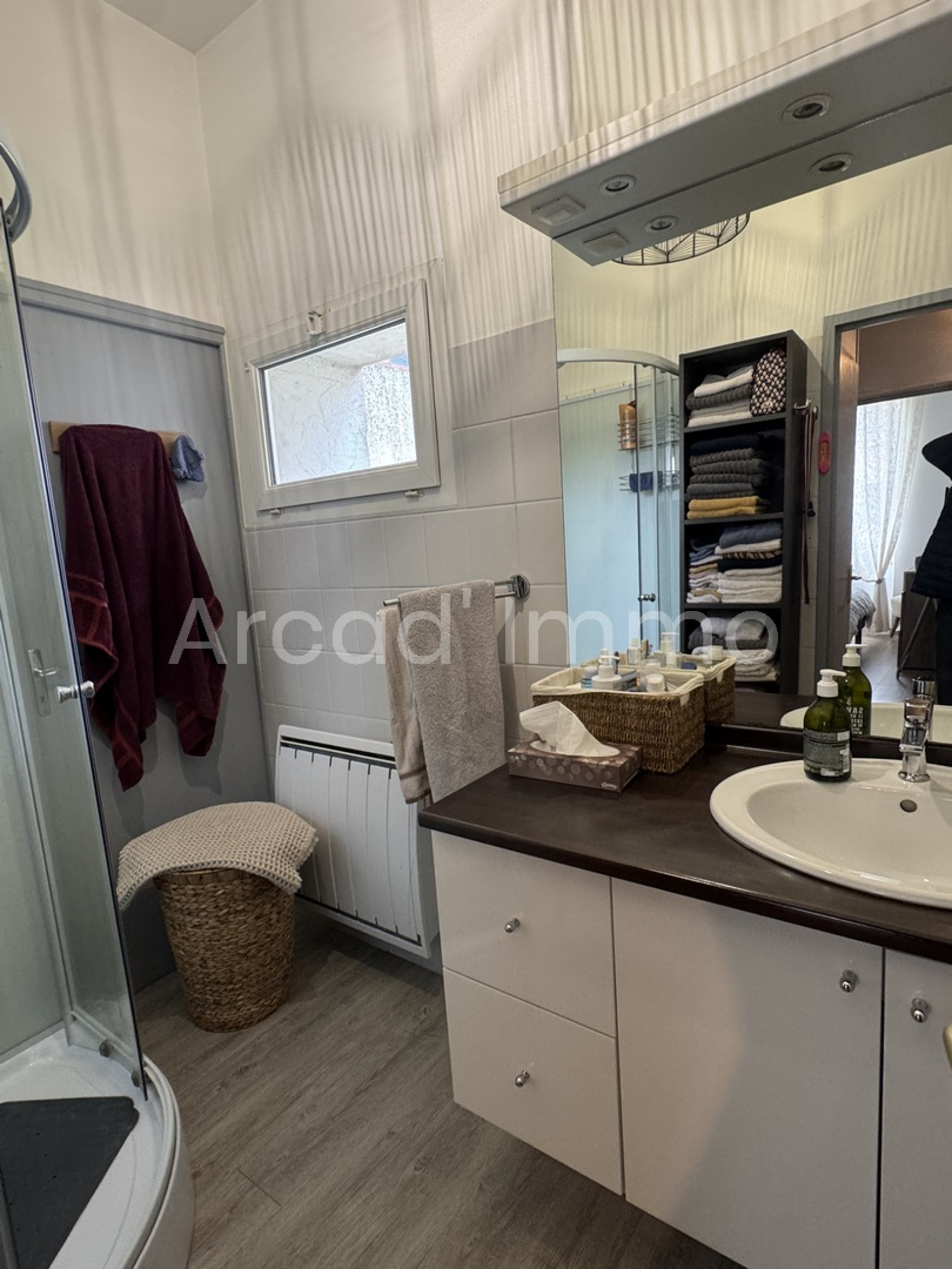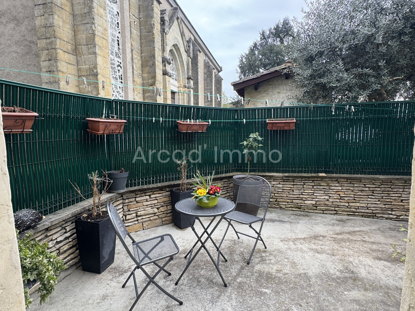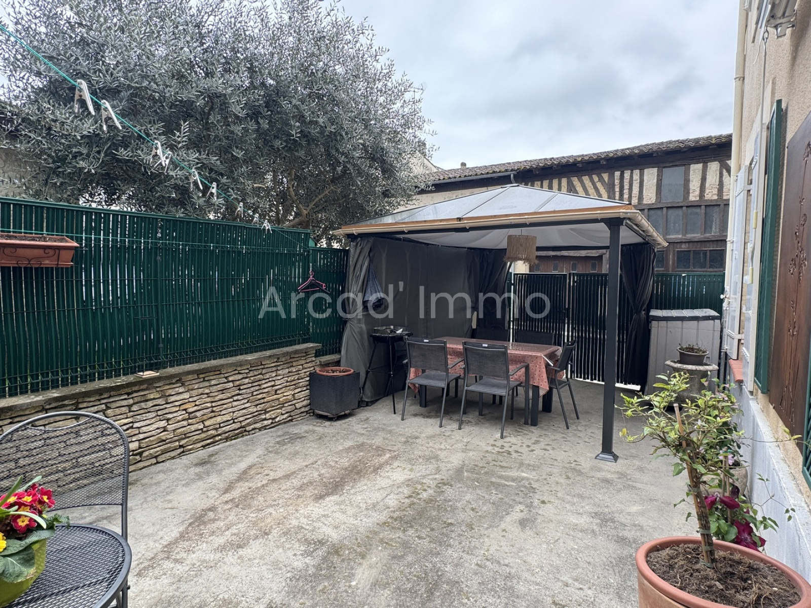 Une belle et agréable terrasse pour l’été et un espace de parking pour l’hiver avec portail et donc en toute sécurité.