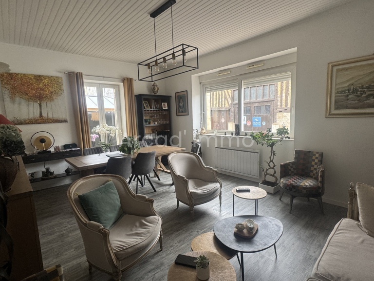 Le rez-de-chaussée est composé d’un séjour/salle à manger (24.45 m²) double vitrage, un conduit de cheminée est en place afin de pouvoir installer un poêle à bois/à granules, chauffage électrique moderne.