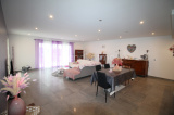 * Un grand séjour (47,63 m²), carrelage au sol, une baie vitrée donnant accès à l’arrière de la maison, une porte fenêtre.