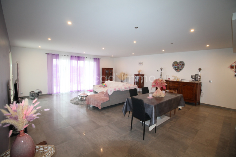 Cette agréable maison de plain-pied avec des volumes généreux se compose :