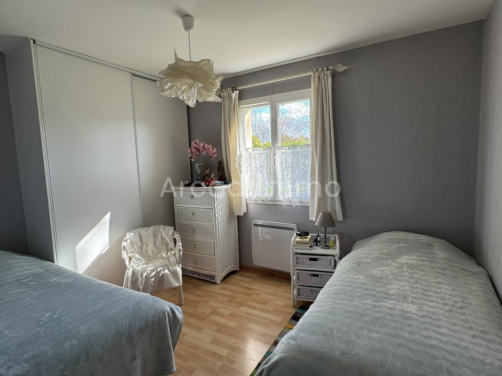 La troisième chambre (10.6 m²) parquet flottant au sol, double vitrage PVC et volets bois.